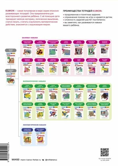 KUMON — самая популярная в мире серия японских развивающих тетрадей. Она предназначена для всестороннего развития ребёнка. С её помощью дети тренируют мелкую моторику, логическое мышление, учатся писать, считать и выполнять математические действия, знакомятся с окружающим миром.
