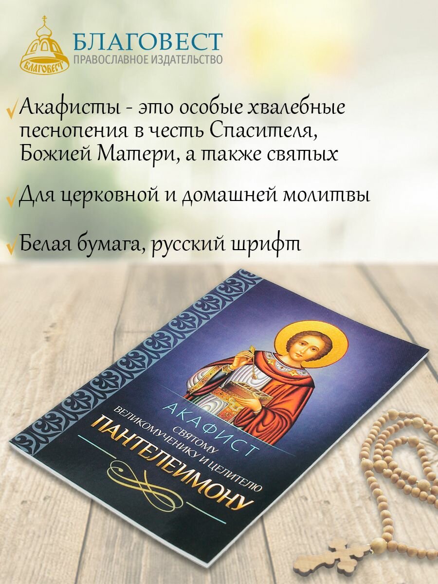 Настоящее издание содержит акафист, посвященный святому великомученику и целителю Пантелеимону. Шрифт — русский, с ударениями.