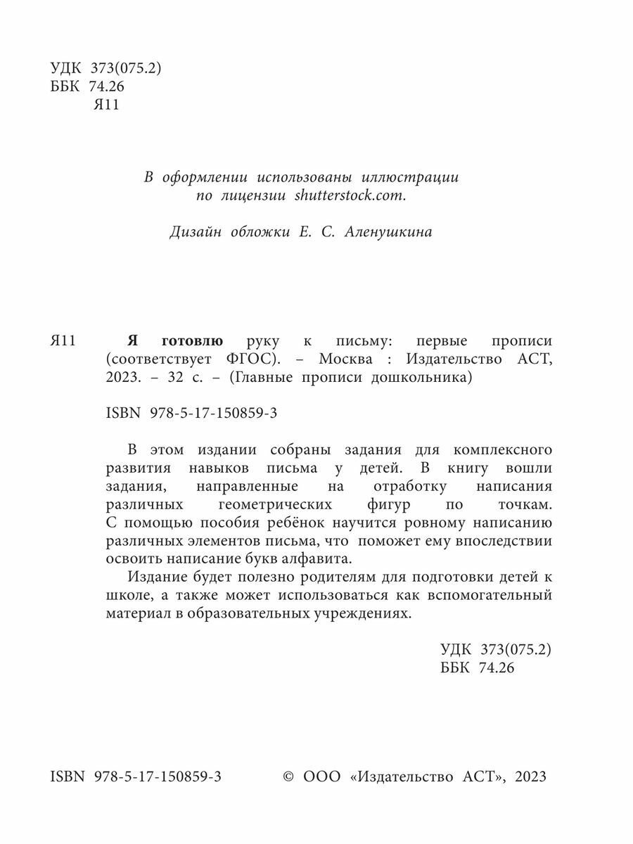 | Серия | Главные прописи дошкольника |