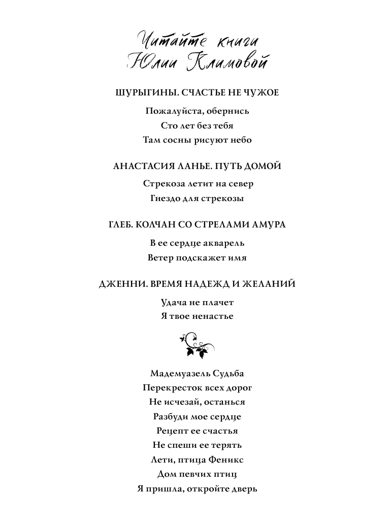 | Серия | Верю, надеюсь, люблю. Романы Ю. Климовой (обложка) |