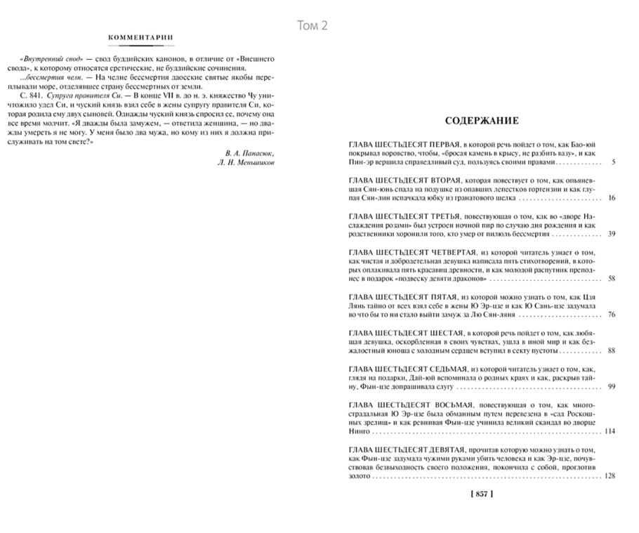 В первый том вошла вступительная статья Л. Н. Меньшикова и первые шестьдесят глав романа.