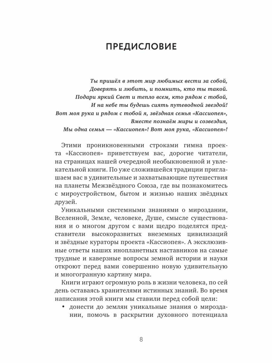 "Проект "Кассиопея". Контакты с внеземными цивилизациями" - вторая книга Ирины Подзоровой. Прочитав ее, вы узнаете, как первый представитель земной цивилизации побывал на заседании Межзвёздного Союза; как были созданы Сфинксы и кем был Бог Тот и какая связь между Петром I и Василием Сталиным. Вы познакомитесь с подробностями жизни, быта и воспитания детей на некоторых планетах Межзвёздного Союза, узнаете, каковы цели и задачи Службы безопасности Межзвёздного Союза. Помните: Вселенная невероятна, и мы не одни.