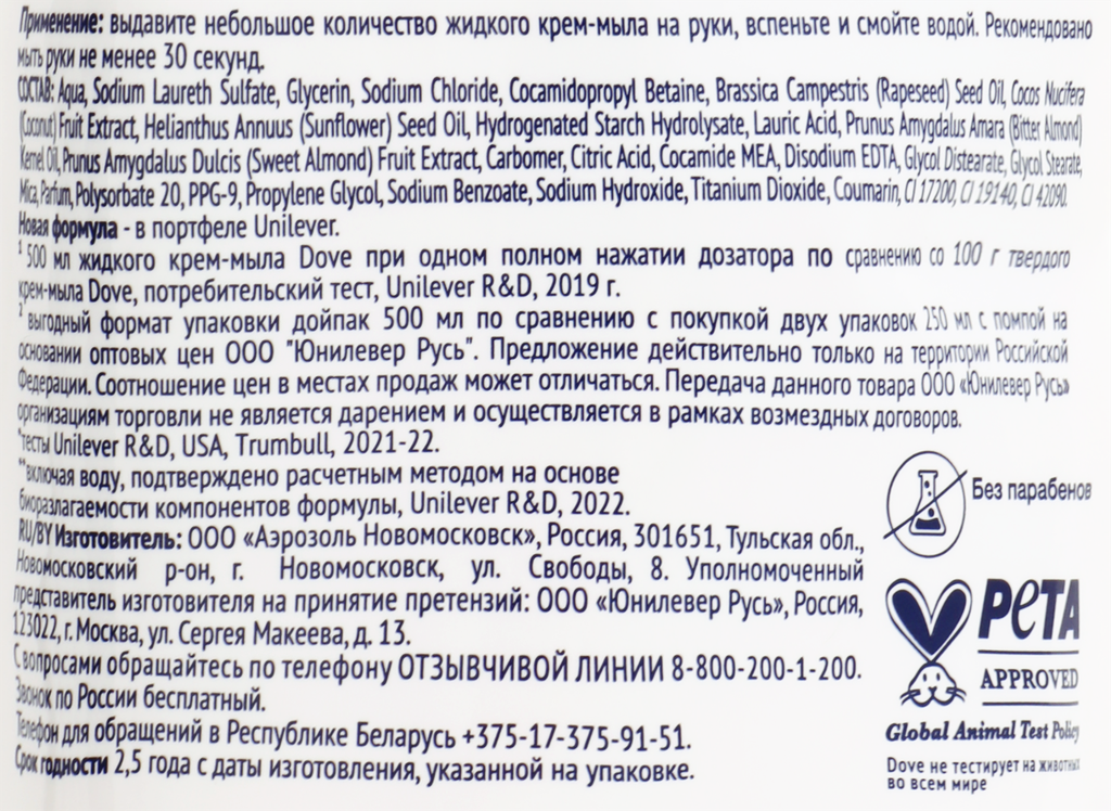 | Особенности состава | без парабенов; без силиконов |
