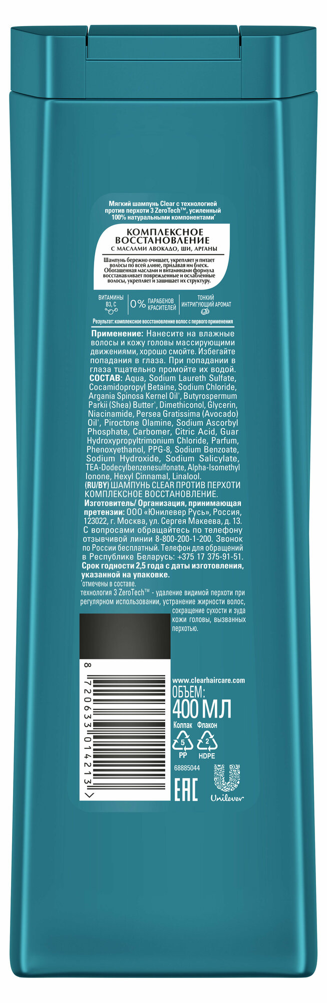 Шампунь для волос Clear против перхоти комплексное восстановление 400мл ЮНИЛЕВЕР РУСЬ
