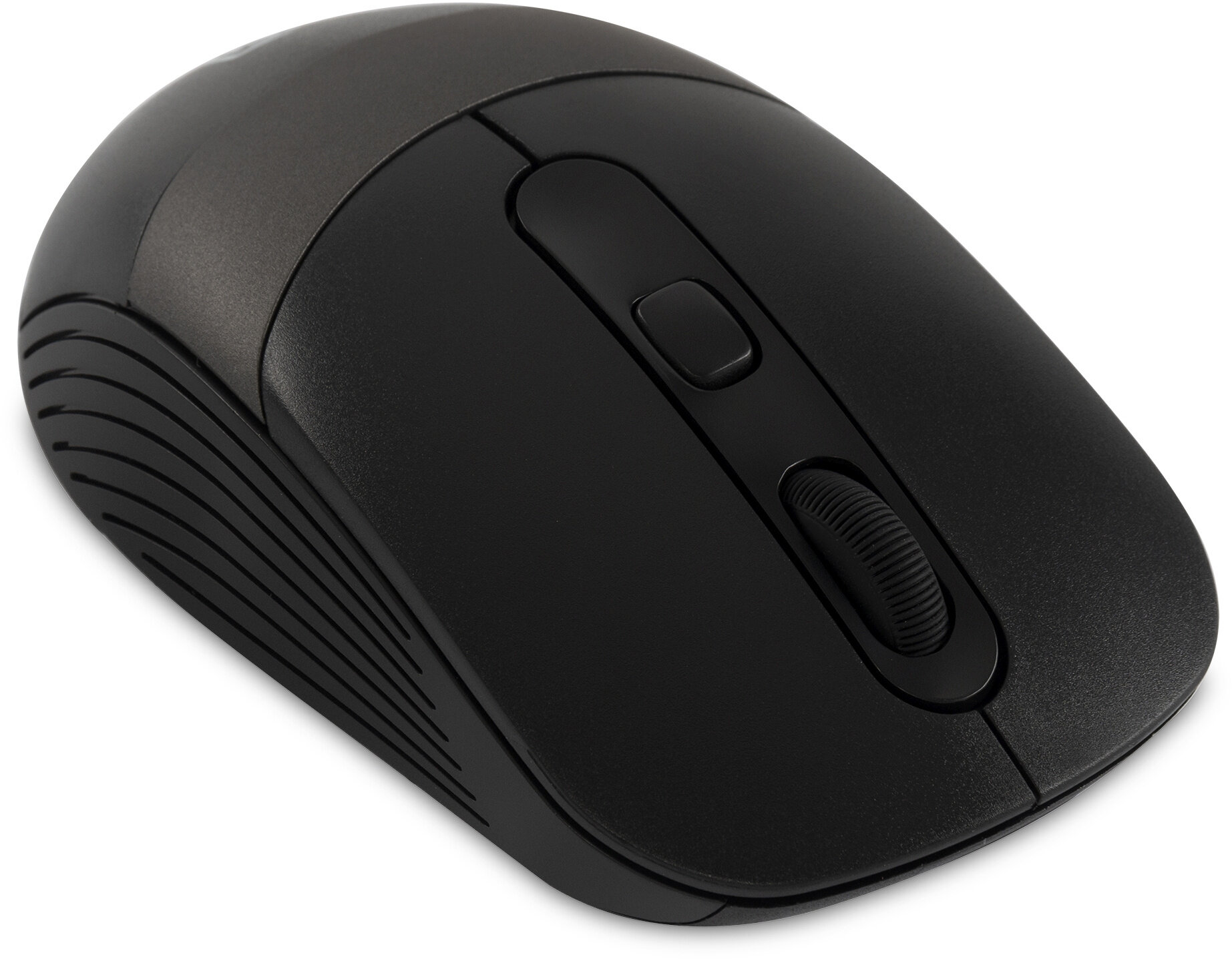 Оптическая беспроводная компьютерная мышь. Эргономичный дизайн — подходит для правой и левой руки. Прорезиненные цветные вставки на корпусе, по бокам — рифленые поверхности. Прорезиненное колесо. Можно настроить оптимальное разрешение вручную, максимальное разрешение сенсора — 3200 dpi. Подключается при помощи USB. Подходит для персональных компьютеров и ноутбуков.