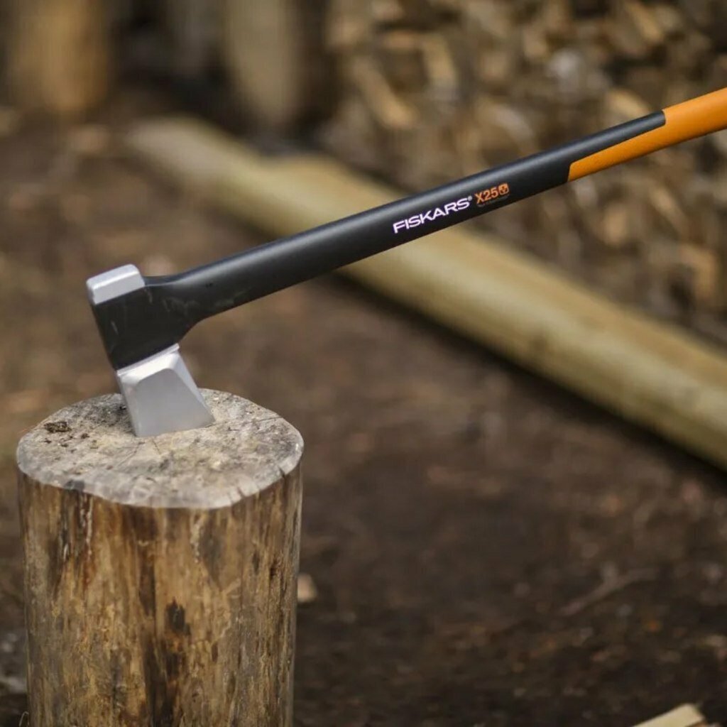 FISKARS X25 - тяжелый топор для рубки толстых поленьев, деревьев, заготовки дров.