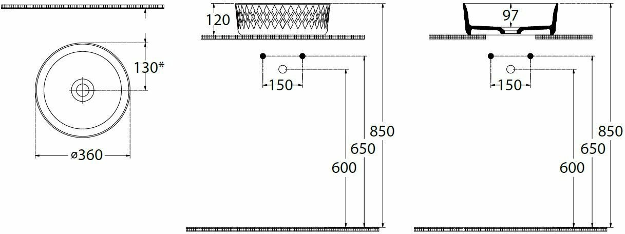 | Без отверстий под смеситель | Без отверстий под смеситель |