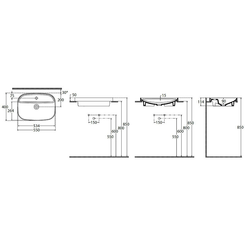 | Без отверстий под смеситель | С 1 отверстием под смеситель |