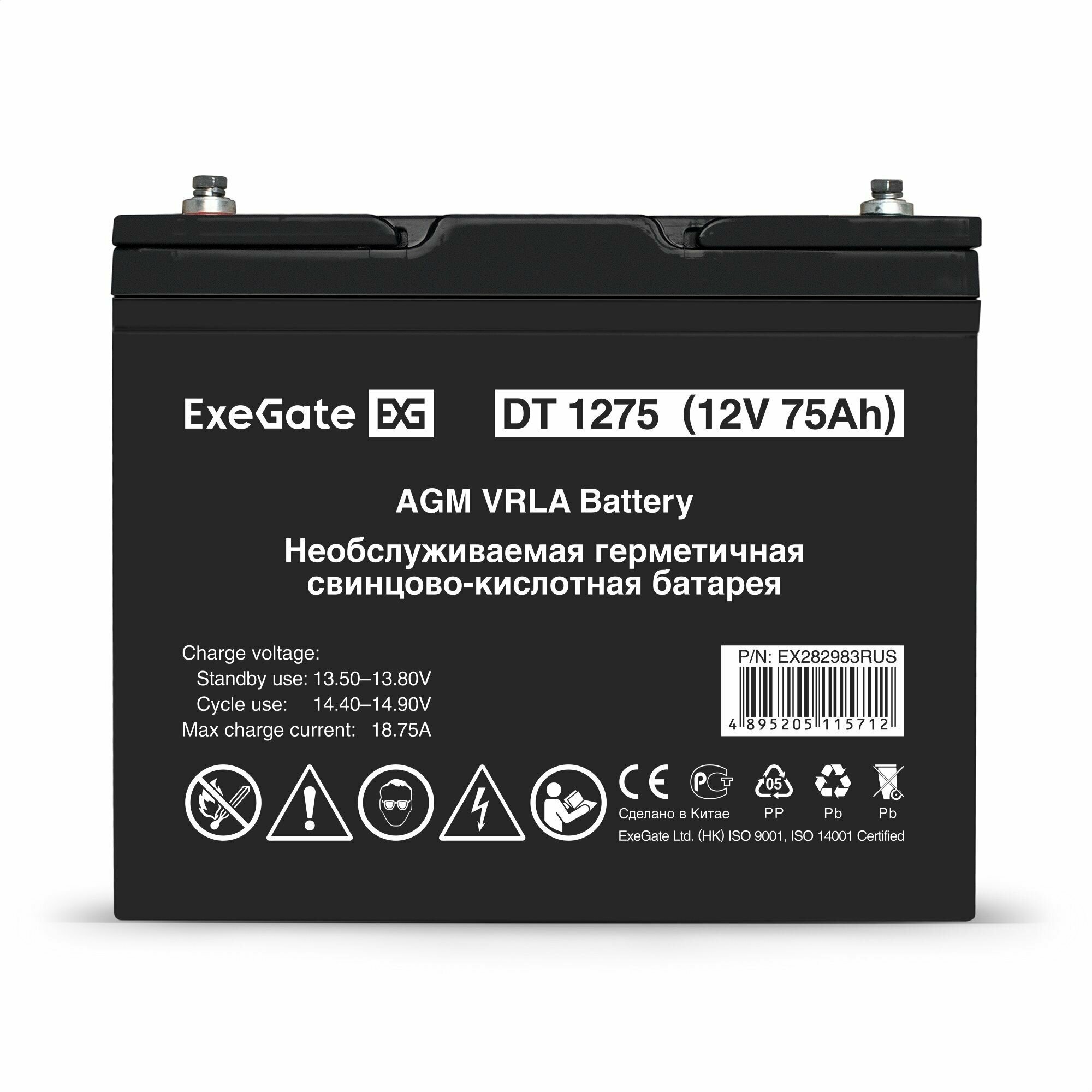 Батарея аккумуляторная Exegate EX282983RUS (12V 75Ah под болт М6) DT 1275