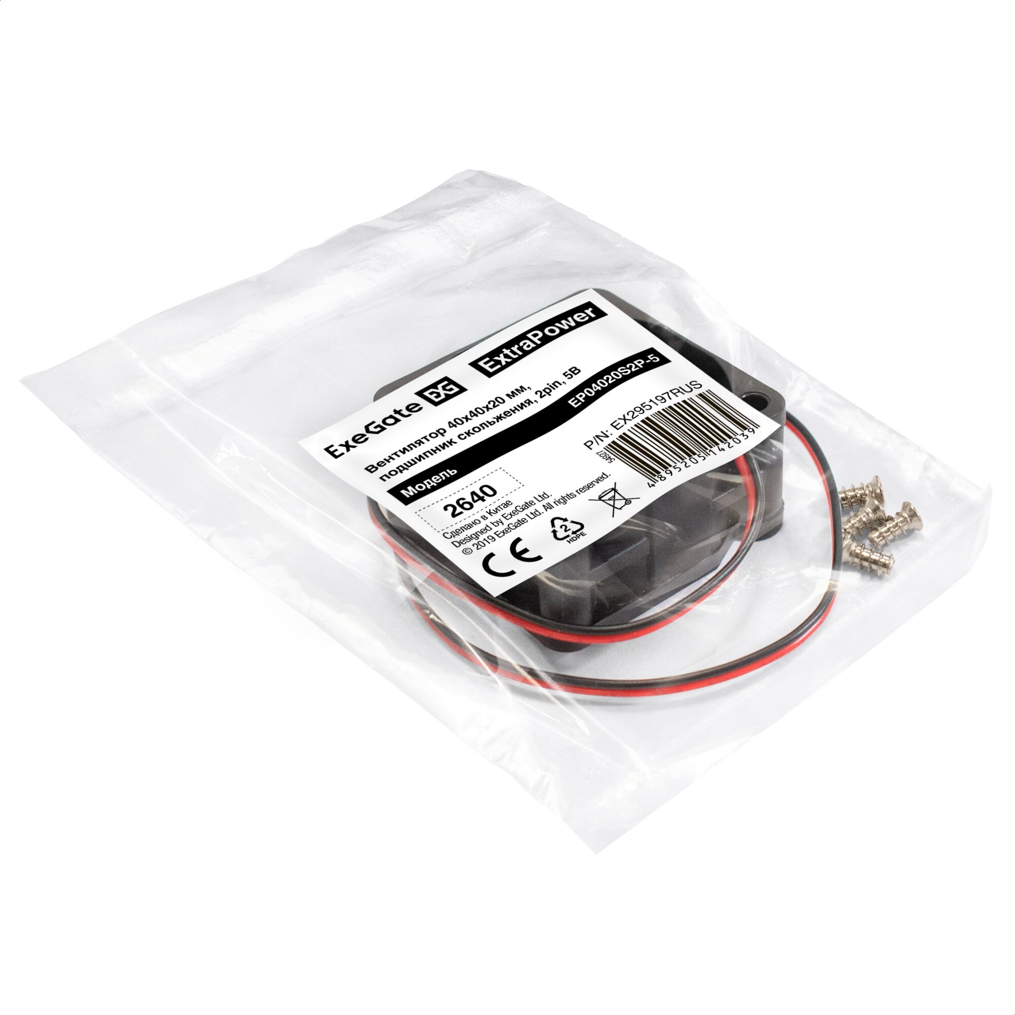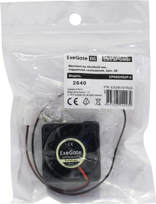 Вентилятор для корпуса Exegate 40x40x20 мм 7000rpm 7.62CFM 30.5dBA 2-pin EX295197RUS