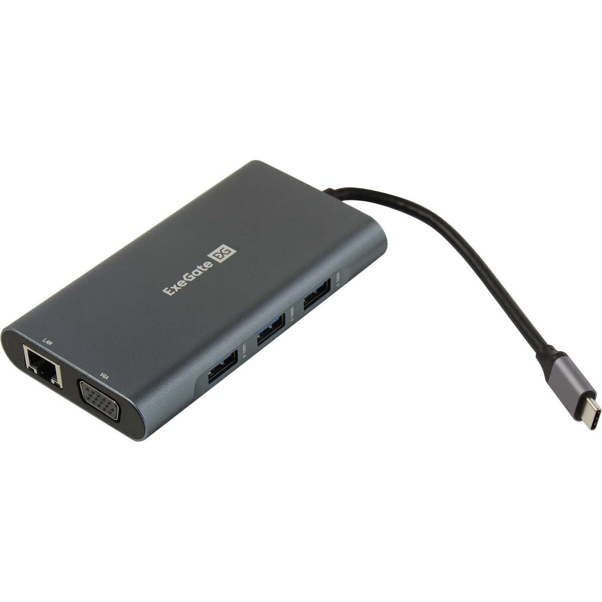 Док-станция Exegate 10-в-1 (кабель-адаптер USB Type-C --> 3xUSB3.0 + Card Reader + PD 100W + HDMI 4K@30Hz + VGA + Audio + Lan RJ45 10/100/ EX293985RUS