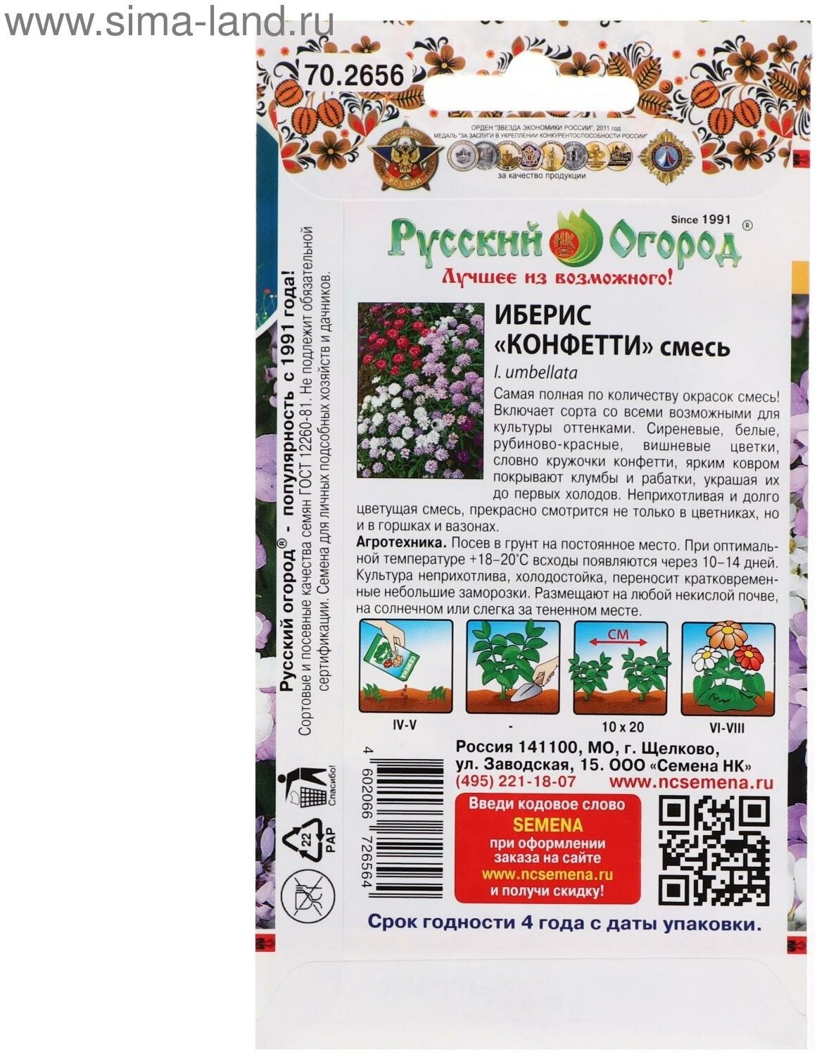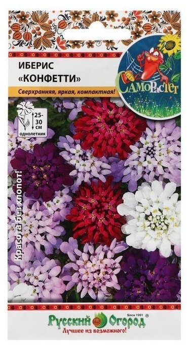 Откройте для себя яркий мир цветов с семенами Иберис Конфетти от бренда "Русский огород". Эта смесь однолетних цветов добавит красок вашему саду, привлекая внимание и создавая атмосферу уюта и гармонии.