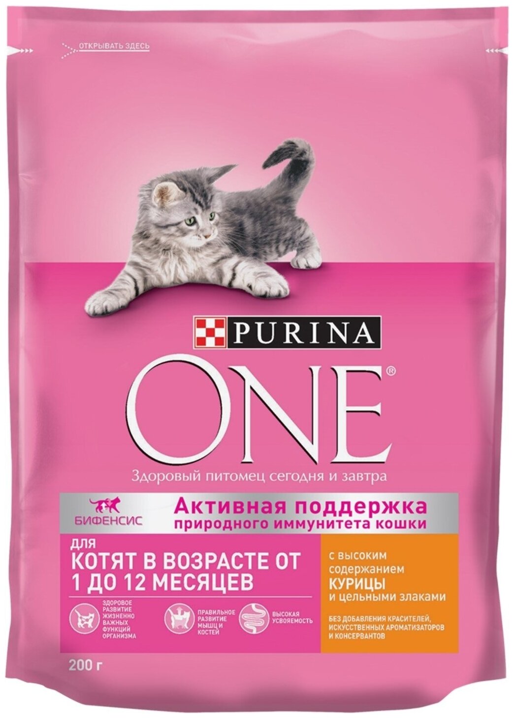 Создавая сухие корма для кошек, эксперты Purina разработали специальный рацион Purina One для котят 1-12 месяцев, который поможет заложить основы здоровья на всю жизнь.