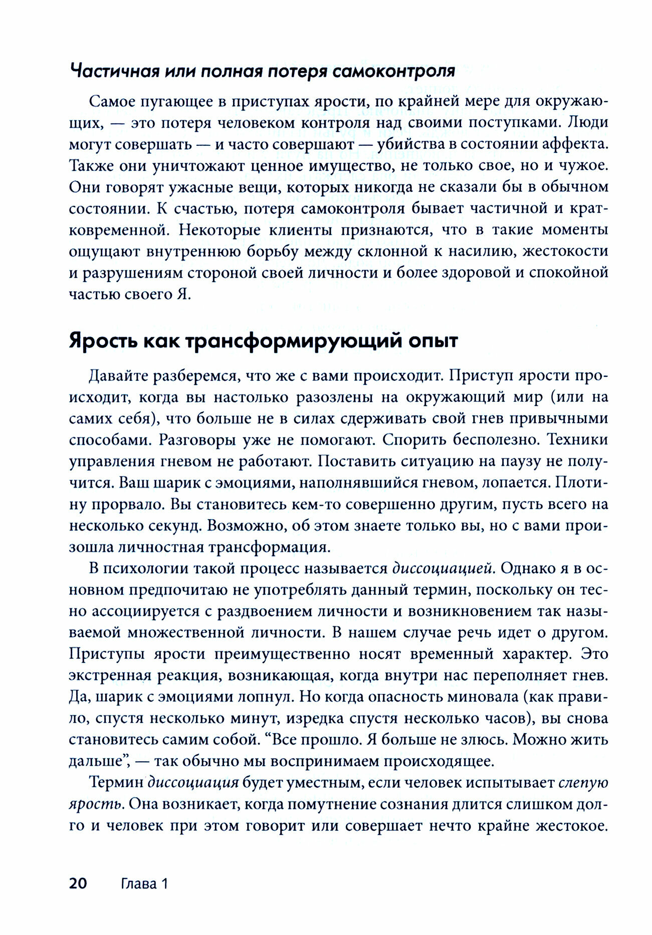 В данной книге известный эксперт по проблемам гнева Рональд Поттер-Эфрон детально объясняет, как побороть приступы ярости, составив пошаговый план личностных и поведенческих изменений. Автор выделяет четыре типа ярости. В книге дается краткое объяснение того, как функционирует мозг в моменты эмоциональных срывов, но основная задача автора — помочь читателю положить конец мучительным эпизодам неконтролируемой агрессии, ведь только вы несете ответственность за свое поведение. В опасной ситуации нет времени на поиск причин и объяснений, поэтому автор предлагает понятные пошаговые методики управления гневом, которые способны дать реальный результат.