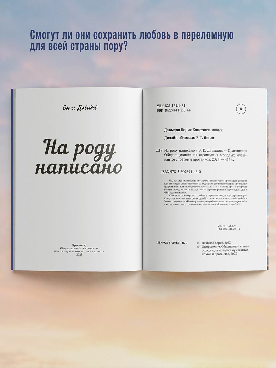 Добром или злом отзовутся его поступки? Эти и многие другие вопросы встают перед Эммой и Максимом — героями романа Бориса Давыдова «На роду написано».