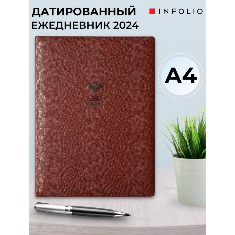 Еженедельник датированный на 2024 год Dragon коричневый 88 листов InFolio