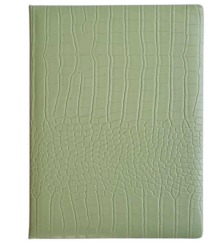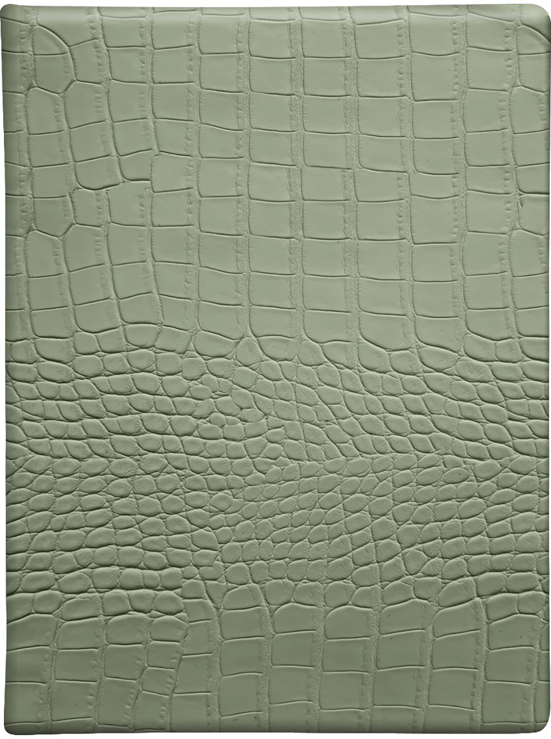 Обложка - твердая с поролоном, нежная искусственная кожа, имитирующая фактуру кожи рептилии, цвет - зеленый. Блок - датированный, 176 стр., скругленные уголки, 1 ляссе, бумага: слоновая кость, прямые уголки, 70 г/м2, печать 2+2. Особенности: цветное ляссе.