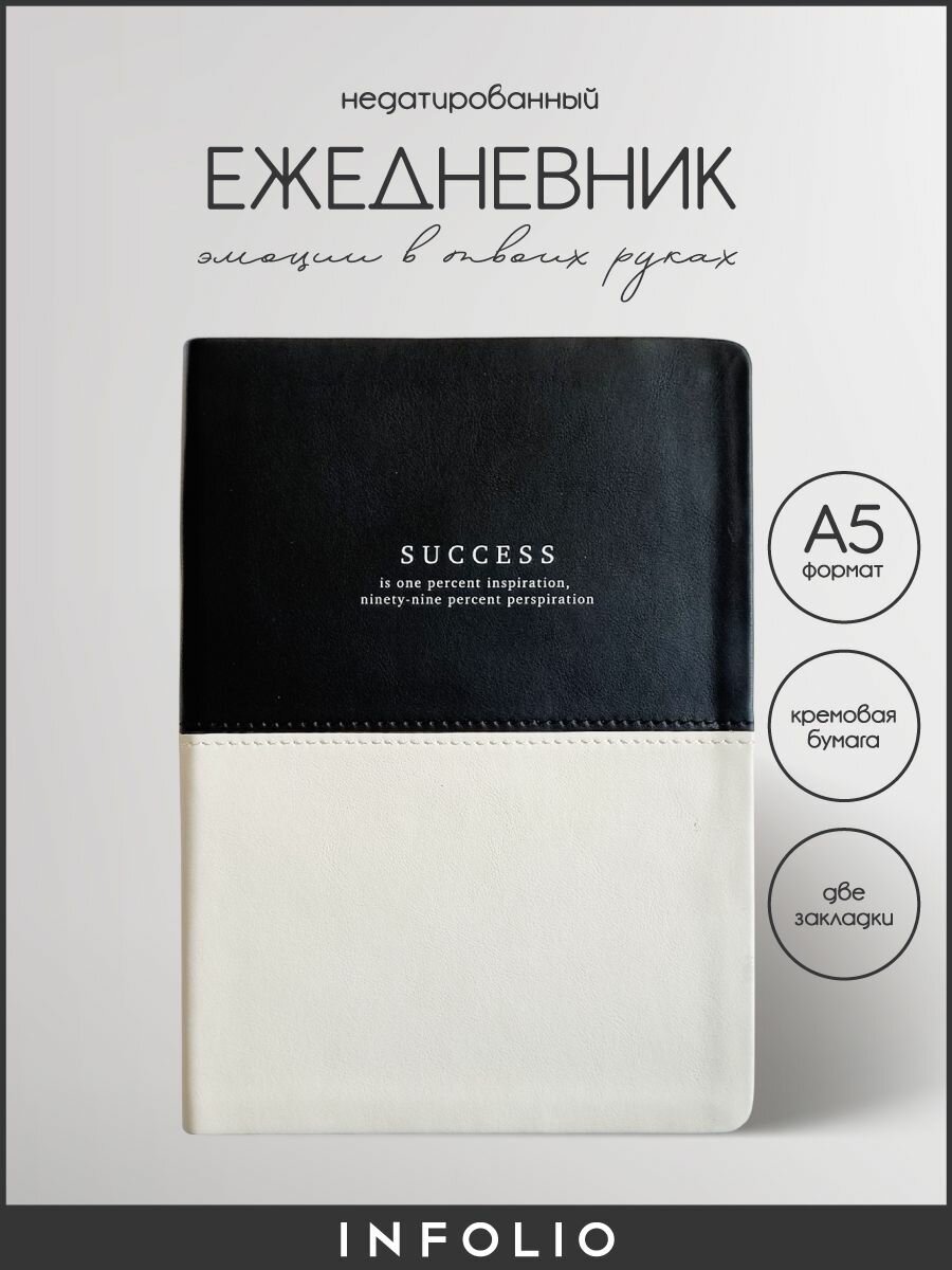 Ежедневник недатированный Success черный+белый А5 160 листов InFolio