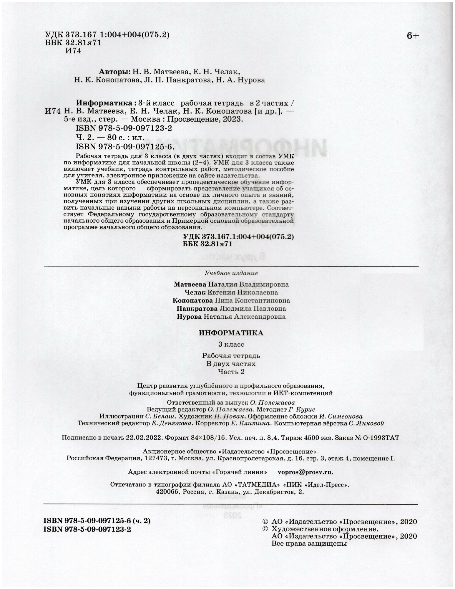 Информатика. Рабочая тетрадь для 3 класса. В 2-х частях. Часть 2 (Матвеева Наталия Владимировна, Челак Евгения Николаевна, Конопатова Нина Константиновна, Панкратова Людмила Павловна, Нурова Наталья Александровна); Просвещение, 2023