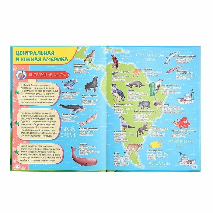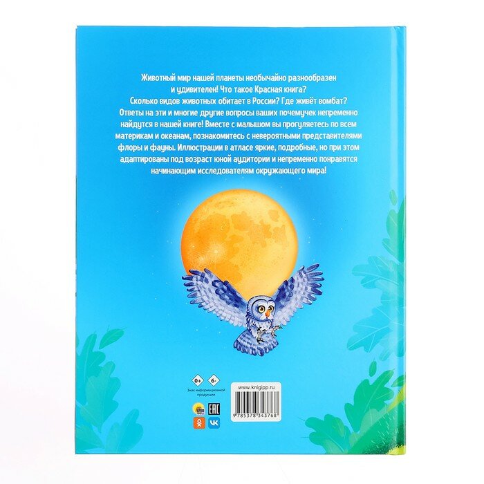 Животный мир нашей планеты необычайно разнообразен и удивителен! Что такое Красная книга? Сколько видов животных обитает в России? Где живет вомбат? Ответы на эти и многие другие вопросы наших почемучек непременно найдутся в нашей книге! Вместе с малышом вы прогуляетесь по всем материкам и океанам, познакомитесь с невероятными представителями флоры и фауны. Иллюстрации в атласе яркие, подробные, но при этом адаптированы под возраст юной аудитории и непременно понравятся начинающим исследователям окружающего мира!