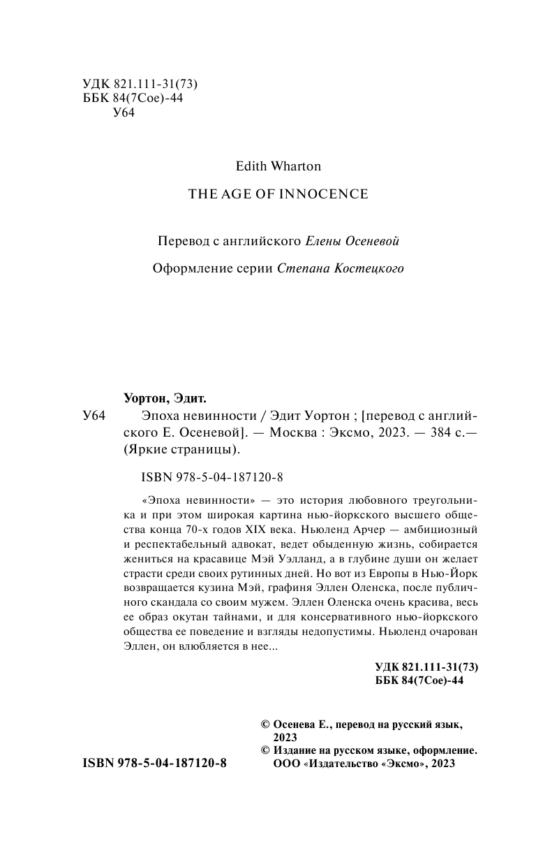 Книга: Эпоха невинности (Уортон Эдит); ООО "Издательство "Эксмо", 2023