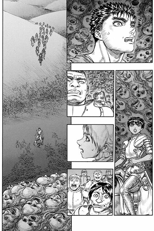 Шестой том - самый сильный и жестокий по моему скромному мнению. Именно здесь запускается главный конфликт всех последующих глав. Да что уж, всей дальнейшей жизни Гатса. Большей трагедии и жести вы не увидите в других частях, но поэтому она так значима.