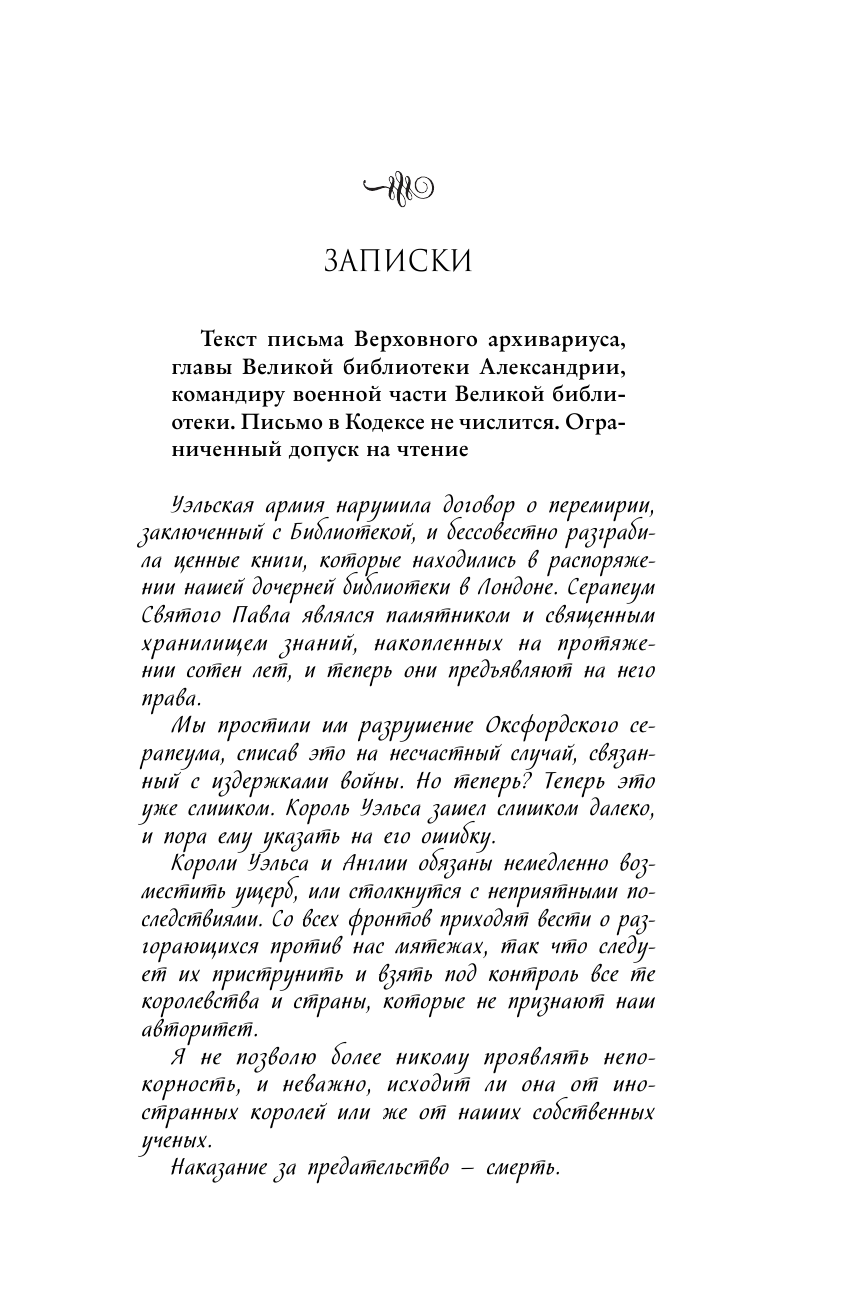 Потрясающий цикл "Великая Библиотека" покорил меня ещё с первой книги. Атмосфера книг, магии и героизма делают историю очень живой и насыщенной! Уникальная вселенная, которую мастерски прописала автор, альтернативная и очень оригинальная история. Главные герои попадают в сложные ситуации, где им приходится делать непростой, иногда даже жестокий выбор, между прошлым и настоящим, долгом и любовью и это описано эмоционально и захватывающе!
