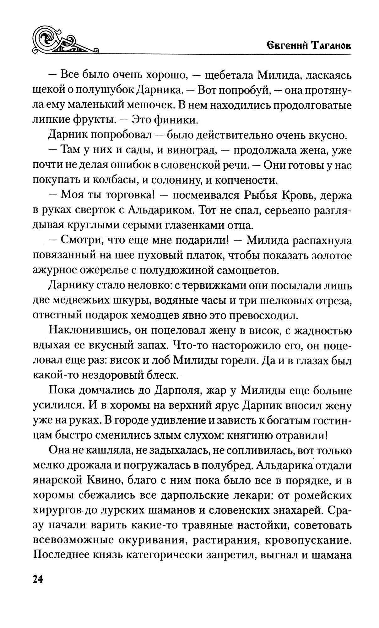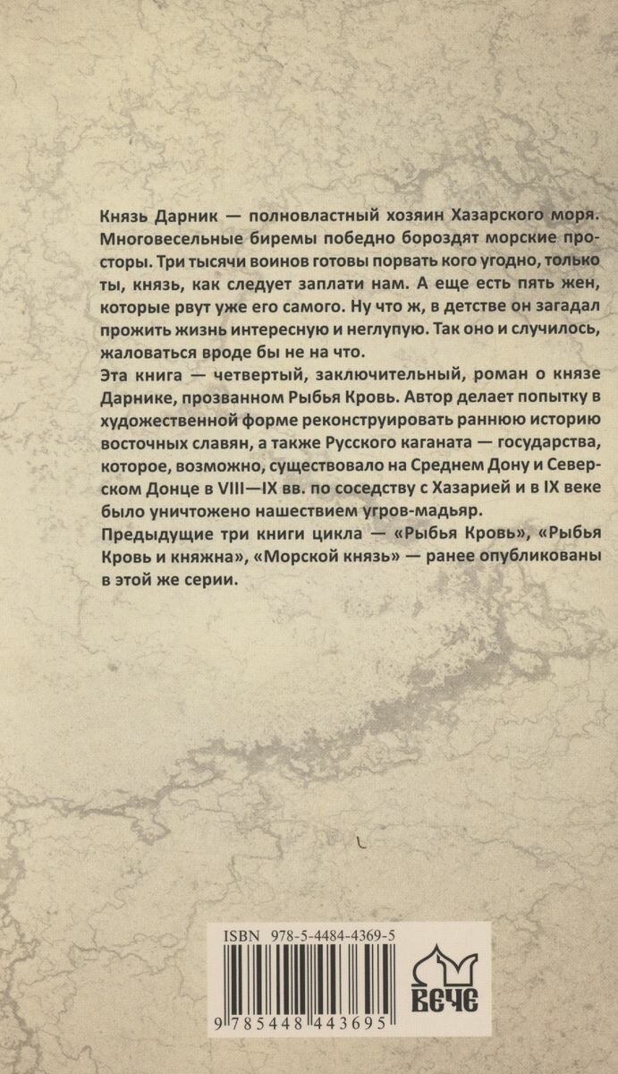 Эта книга — четвертый, заключительный, роман о князе Дарнике, прозванном Рыбья Кровь. Автор делает попытку в художественной форме реконструировать раннюю историю восточных славян, а также Русского каганата — государства, которое, возможно, существовало на Среднем Дону и Северском Донце в VIII—IX вв. по соседству с Хазарией и в IX веке было уничтожено нашествием угров-мадьяр.