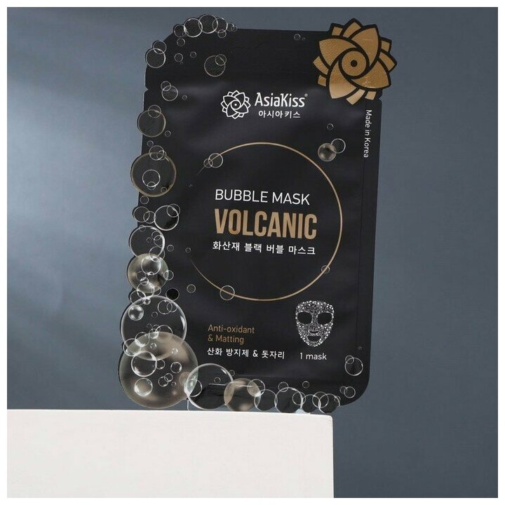 Маска для лица AsiaKiss volcanic bubble mask черная пузырьковая с вулканическим пеплом 20мл AsiaKiss International Corporation