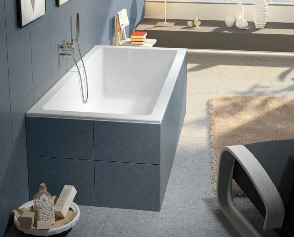 Акриловая ванна Riho Rethink Cubic 180x90 Fall изготовлена из высококачественного листа акрила глянцевого белого цвета, армирована. Riho Fall - наполнение ванны через переливное отверстие. Имеет плотный нижний бортик 2 см для встраивания. Слив-перелив с расположен по центру ванны и входит в комплектацию, спинки ванны - симметричные. Щелевой перелив, слив - сифон нажимного типа, белый, в цвет ванны. Дно широкое и почти плоское, что позволяет удобно стоять в этой ванне. Поверхность не стареет и устойчива к коррозии. Материал непористый и гладкий, поэтому на нём не остаются известковый налёт и бактерии, поверхность ванны легко очищается. На ощупь ванна тёплая, вода остывает в ней медленно.
