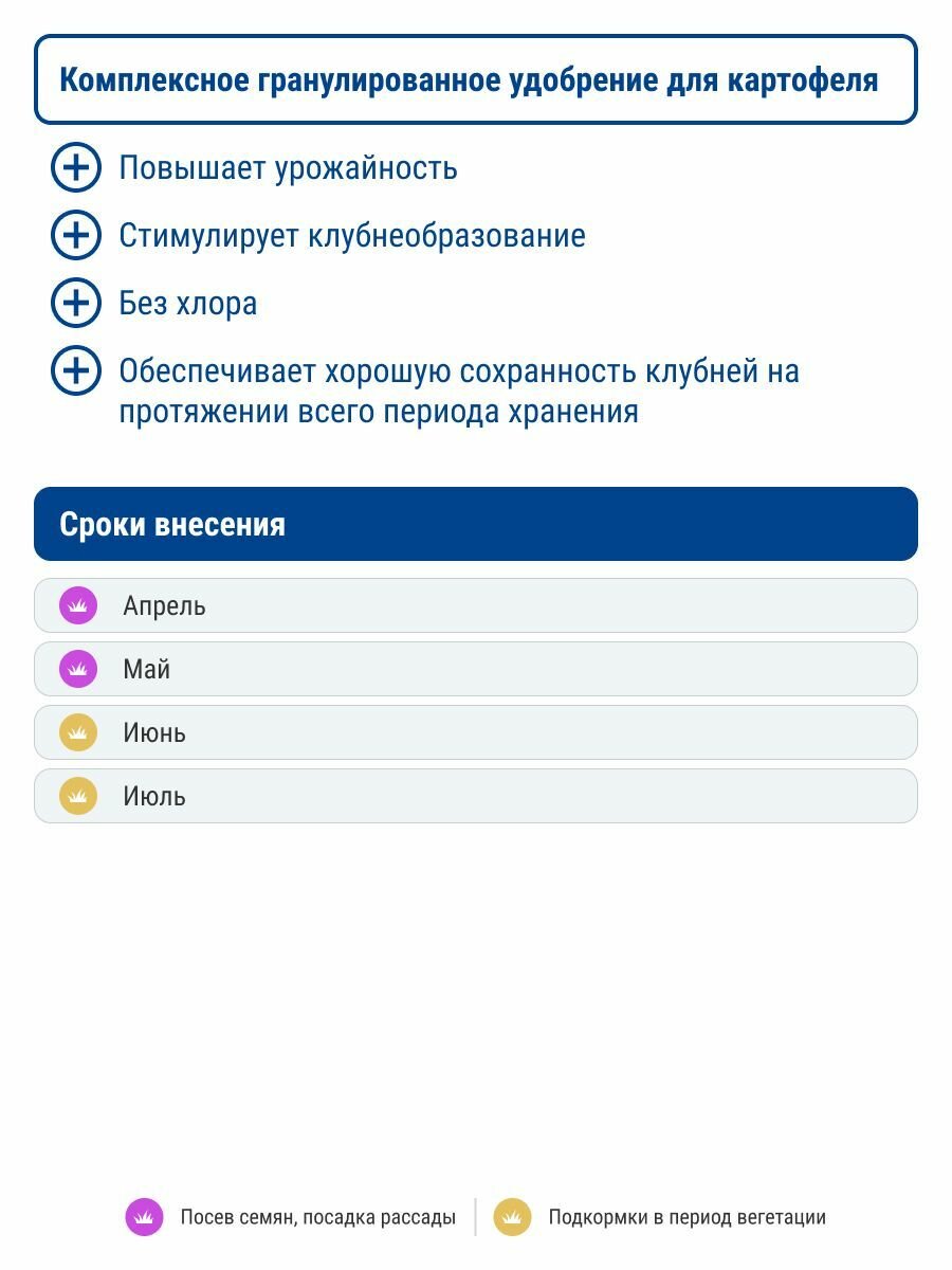 | Особенности удобрения | для картофеля |