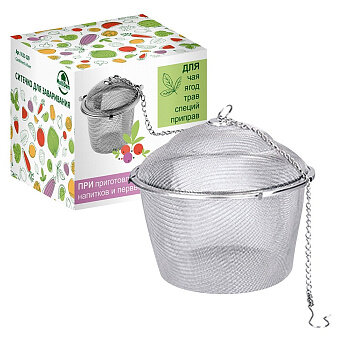 Применяется для заваривания чая, морса и различных трав непосредственно в чайной посуде или заварочном чайнике. Ситечко позволит вам насладится свежезаваренным чаем или морсом без чаинок, семян и шкурок ягод. Может использоваться как ситечко для приправ (лаврового листа, перца-горошка, корицы, гвоздики, аниса и т.п.) при приготовлении первых блюд и горячих напитков. Незаменимый аксессуар на кухне, даче, в поездках и походах. Перед первым и после каждого применения, промыть в теплой воде, можно с жидким моющим средством, сполоснуть проточной водой и просушить. Не рекомендуется мыть в посудомоечной машине.