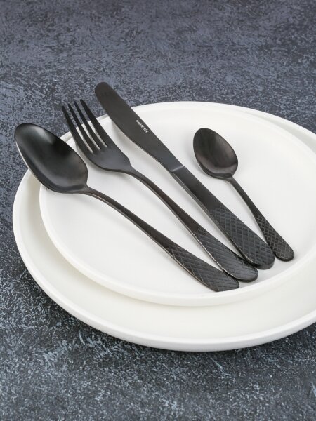 Столовые приборы DOMENIK BLACK NET - это высококачественные столовые приборы, созданные для того, чтобы сделать вашу ежедневную жизнь более комфортной и удобной. Они выполнены из нержавеющей стали, что обеспечивает прочность и долговечность. Каждый элемент этого набора имеет эргономичную форму, которая легко лежит в руке и позволяет удобно пользоваться ими.