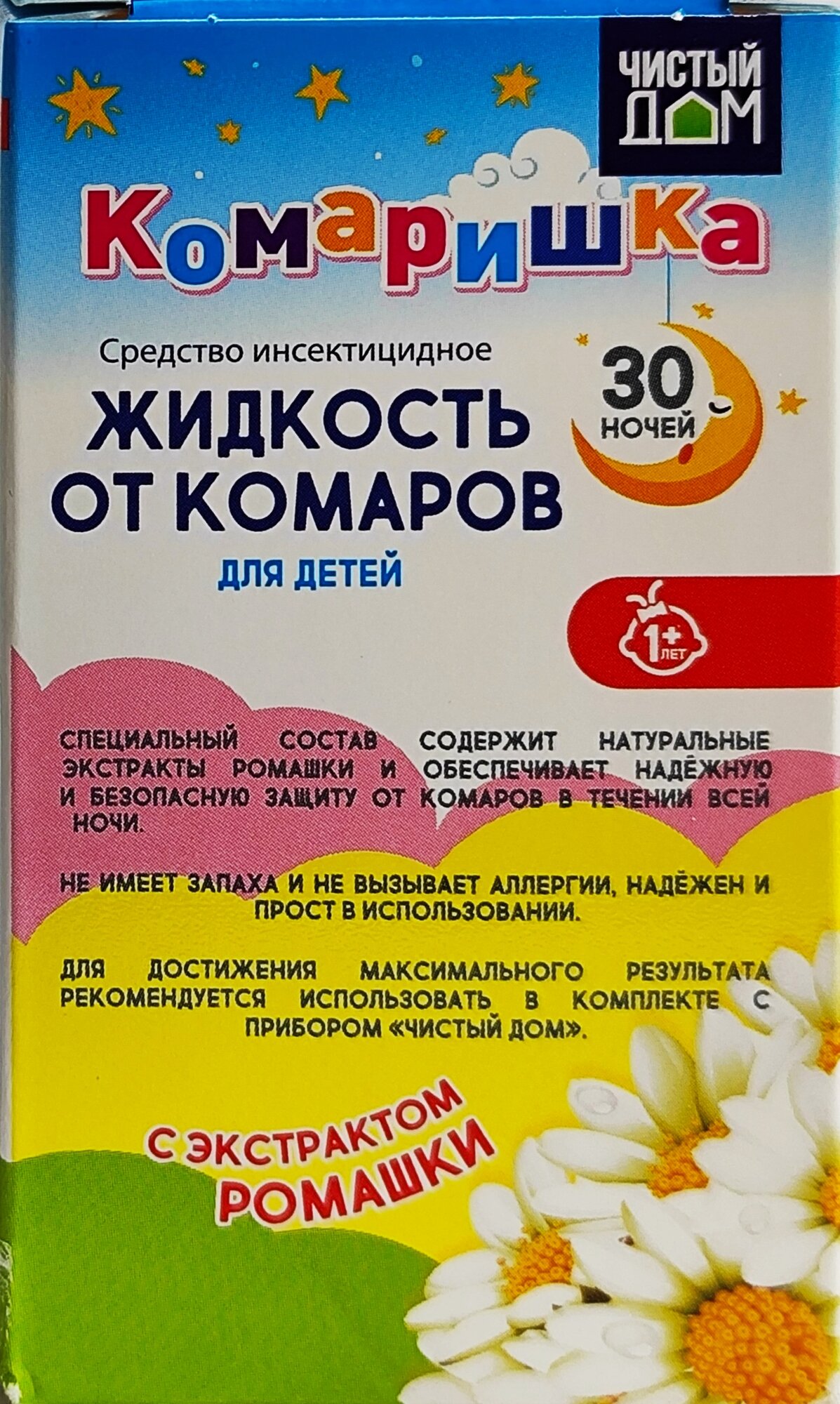 Жидкость от комаров Чистый дом "Комаришка" для детей 30 ночей