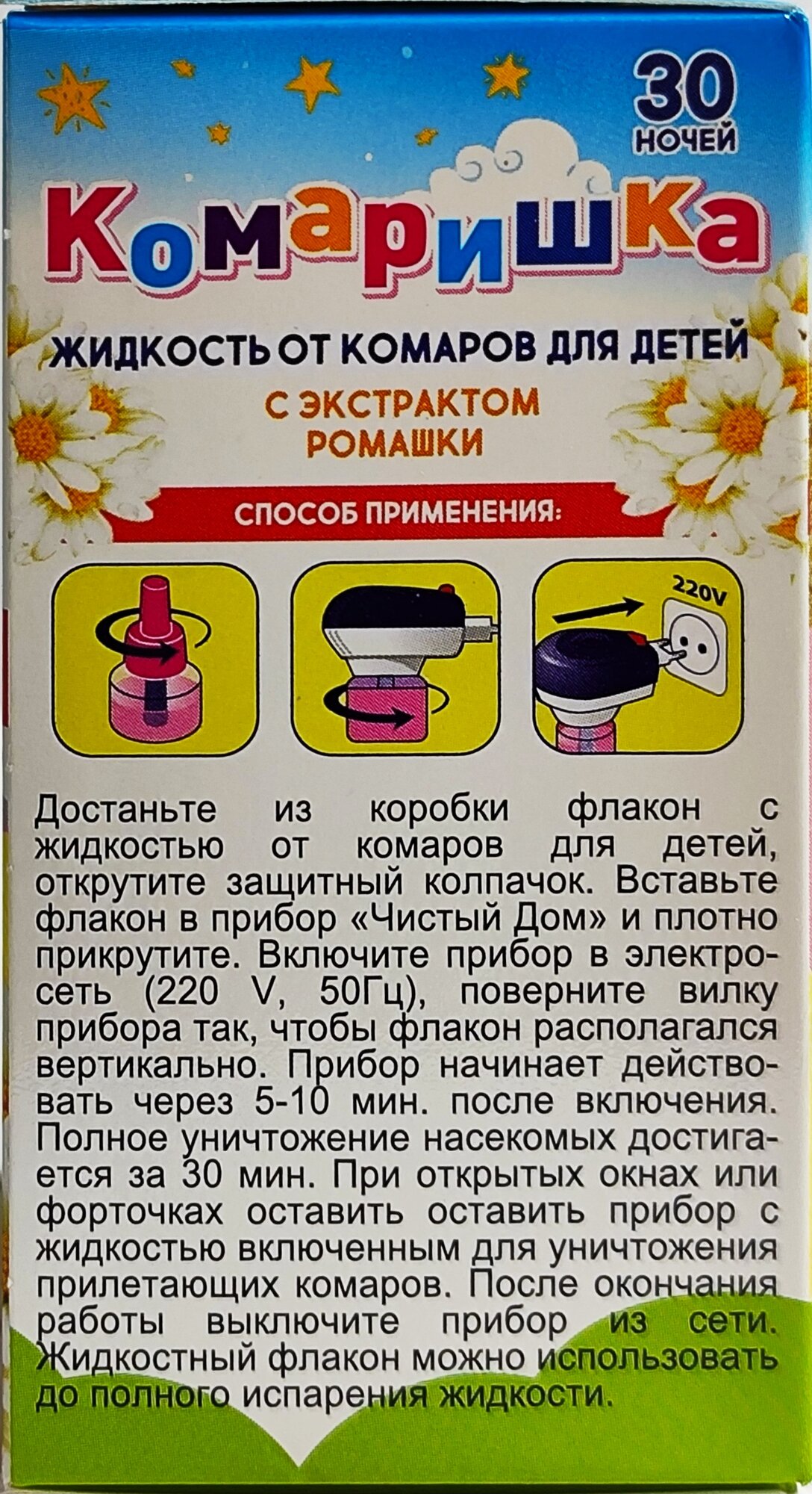 - Жидкость от комаров Комаришка (Чистый дом), 1 шт обзор 02-114