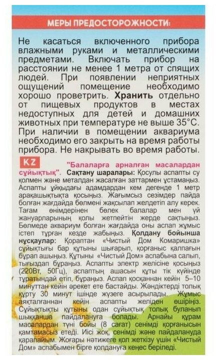 | Способ применения | извлеките жидкость из упаковки, вставьте в фумигатор и включите в электросеть |