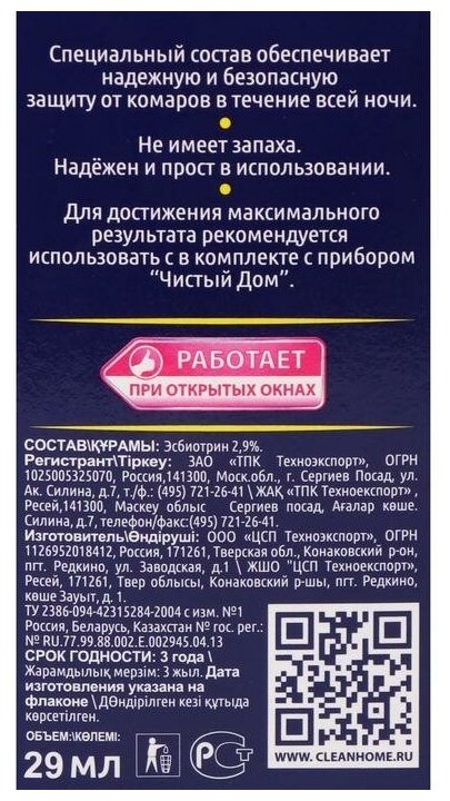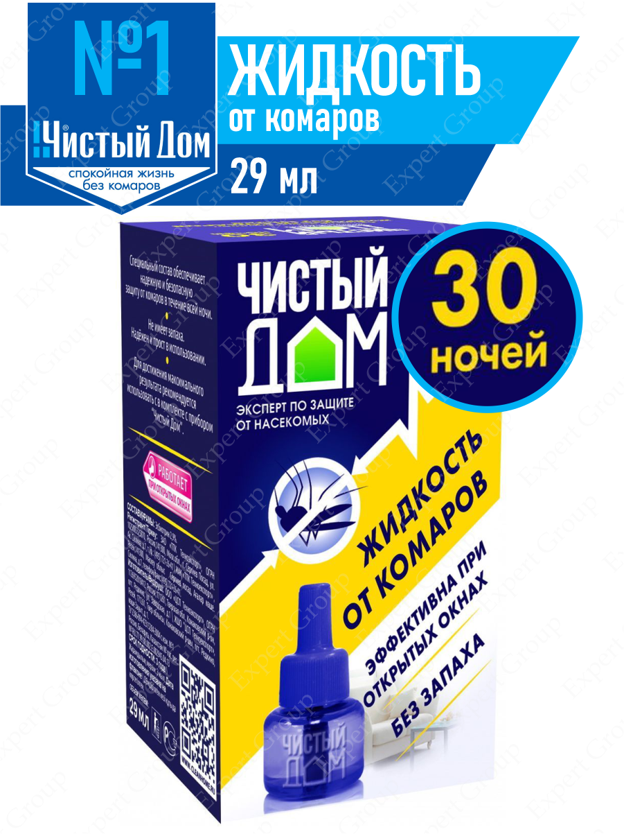 - Жидкость от комаров 30 ночей (Чистый дом), 1 шт обзор 02-605 производитель Техноэкспорт ООО (Россия)