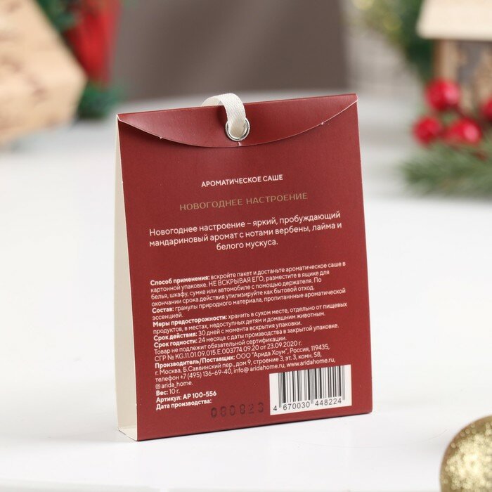 ** Саше ароматическое Arida Home Новогоднее настроение** наполнит приятным ароматом квартиру, дом или офис и создаст атмосферу уюта. Запах ненавязчивый, свежий и нежный. Саше можно разместить в шкафу, сумке, автомобиле. Аромат впитается и распространится по помещению.