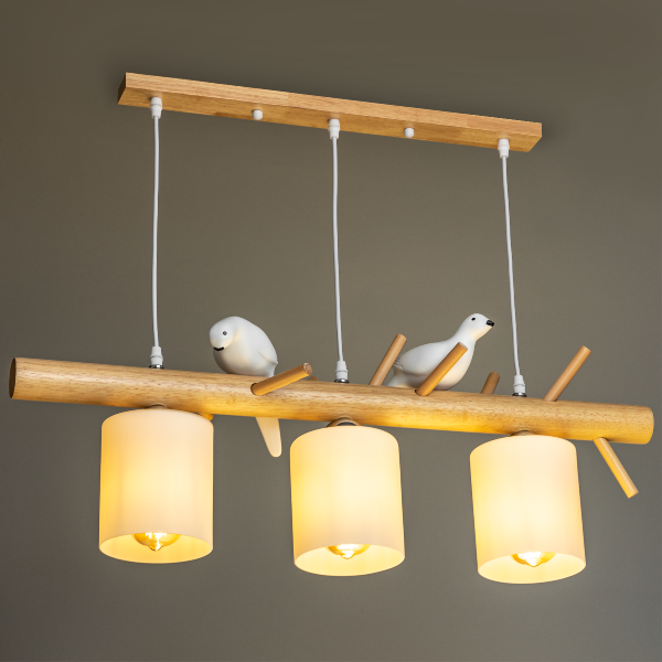 **Светильник потолочный «Birdie» 524403** оснащен 3 плафонами, подходит для низких потолков, к которым крепится при помощи планки и саморезов. Модель формирует световое пятно площадью до 10 м², подходит для эксплуатации в детской комнате или спальне. Выполнена в цвете «дерево». Для управления используется настенный выключатель. В качестве источника питания применяется сеть переменного тока с напряжением 230 В. Лампочки не входят в комплект и покупаются отдельно.