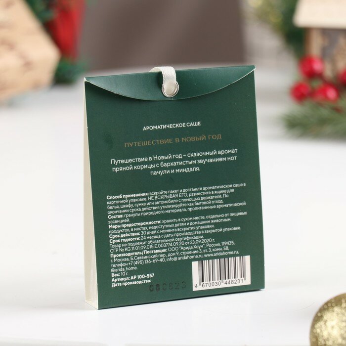 ** Саше ароматическое Arida Home Путешествие в новый год** наполнит приятным ароматом квартиру, дом или офис и создаст атмосферу уюта. Запах ненавязчивый, свежий и нежный. Саше можно разместить в шкафу, сумке, автомобиле. Аромат впитается и распространится по помещению.