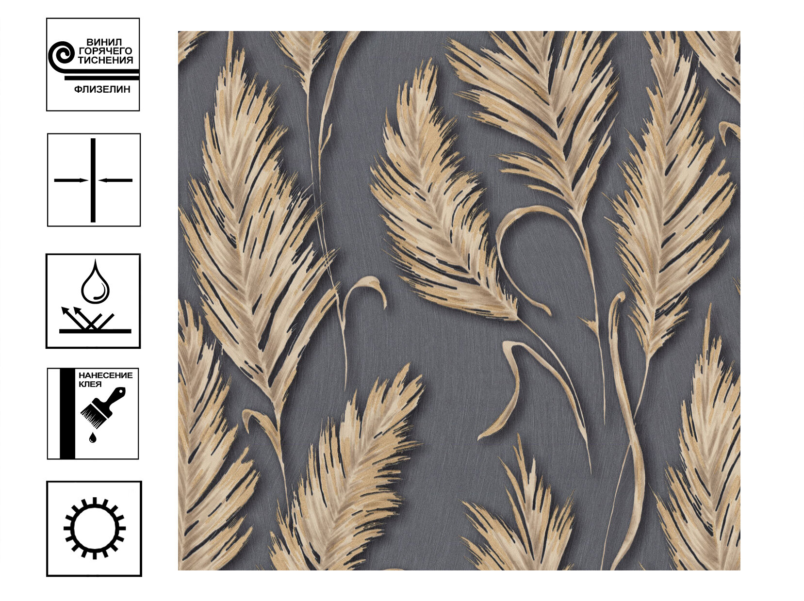 Обои Diamond Odelia виниловые на флизелиновой основе выполнены в технике горячего тиснения, размер 1,06*10м. Коллекция «Odelia» — это классический дуэт из мотива и фона. Основу мотива составляют растительные орнаменты, напоминающие колосья. Они будто колышутся на ветру и придают всей композиции особую динамику, а длинные тонкие стебли органично заполняют пространство. Все колоски покрыты перламутром и глиттером - кажется, словно солнце одарило их своими лучами, наполняя светом и теплом. Фон коллекции, выполненный в спокойных тонах, имеет необычную фактуру, состоящую из тончайших линий, образующих волны. А перламутр, нанесенный на все полотно, дает благородное лучезарное сияние. Обои легко наносятся на поверхность, маскируя мелкие трещины и неровности. Отличаются повышенной прочностью, устойчивостью к влаге, воздействию солнца, перепаду температур и различного рода механическим повреждениям. Пропускают воздух, что позволяет избежать возникновения грибка на стенах. Удобны в поклейке: клей наносится только на стену, полотна легко стыкуются. Рекомендуется использовать любой клей для флизелиновых обоев. Такие обои великолепно будут смотреться в любых комнатах вашего дома, квартиры: в гостиной, в спальне, в прихожей. Bнимание! Просим всегда соблюдать инструкцию по наклеиванию обоев, указанную на обратной стороне этикетки Ваших новых обоев!
