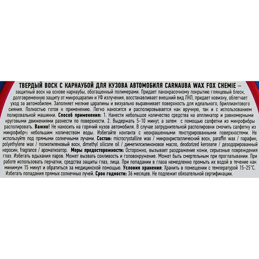 На сегодняшний день товар «Воск для кузова Fox Chemie с карнаубой 200 г LMF85» можно купить с кешбеком в 1 магазине: Яндекс.Маркет