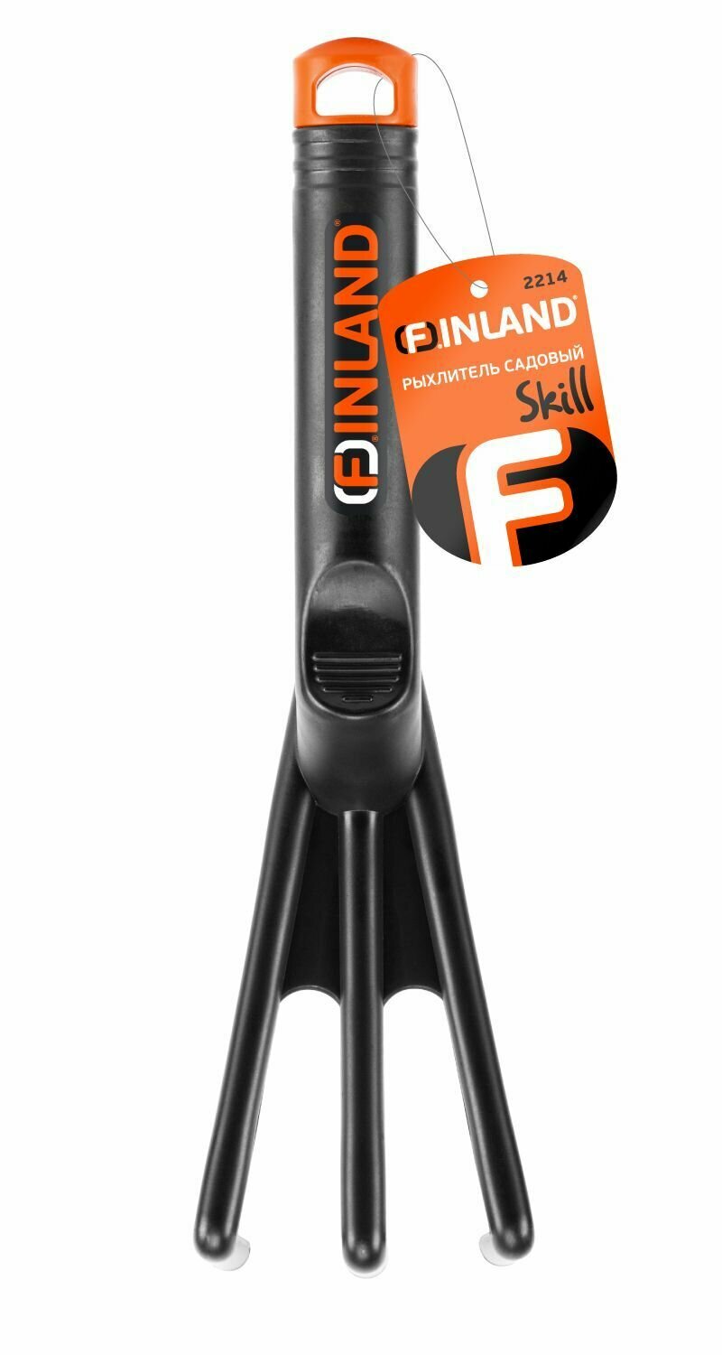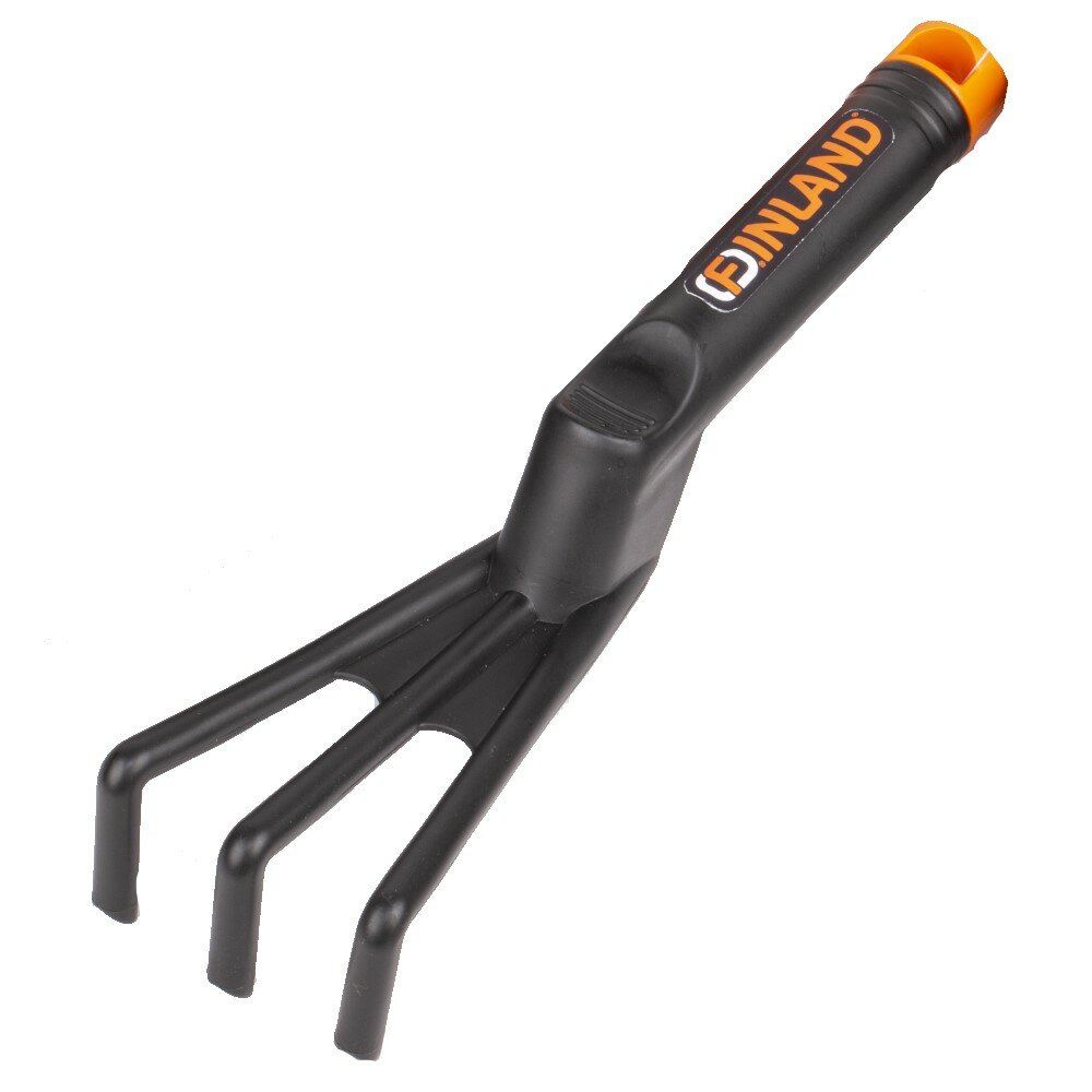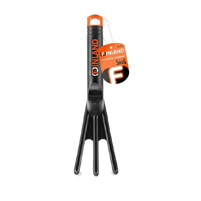 **Рыхлитель Finland Skill 2214** трехзубый длиной 28.5 см предназначен для ручного рыхления и аэрации почвы на небольших грядках и клумбах. Инструмент выполнен из гладкого и прочного пластика, химически нейтрального и не оказывающего воздействие на компоненты почвенного покрова. Форма слегка заостренных зубцов обеспечивает деликатную обработку рядом с недавно посаженными культурами. Удобная для удержания рукоятка и упор для пальца облегчают манипуляции, предупреждают усталость руки.
