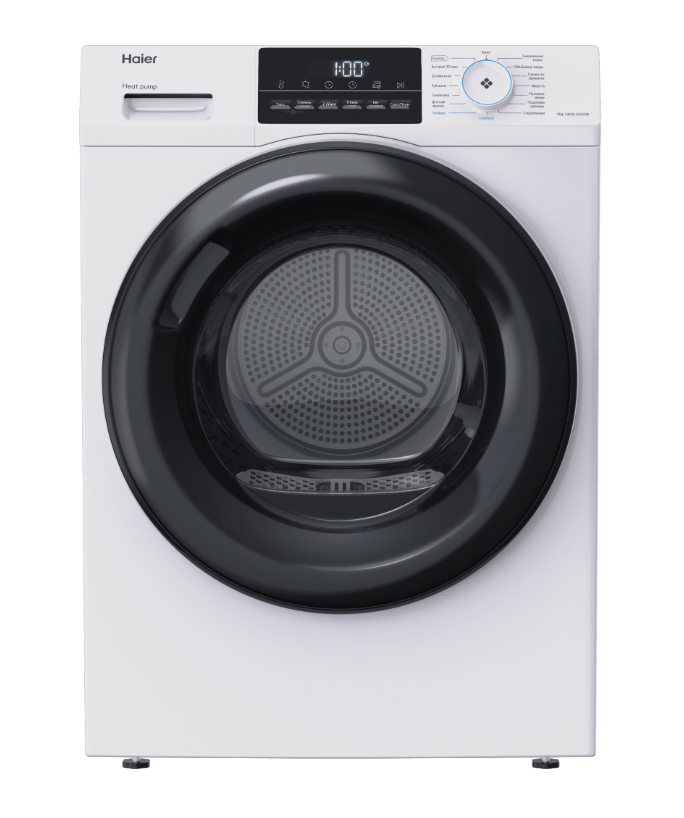 Сушильная машина Haier с тепловым насосом обеспечивает эффективную и бережную сушку одежды на основе конденсационного принципа действия. Данная модель обладает загрузкой 9 кг и широким перечнем программ для разных типов одежды. Панель с поворотным переключателем и дисплеем обеспечивает простой выбор необходимых параметров. Таймер отложенного запуска позволяет программировать определенное время начала сушки. Среди других особенностей Haier отмечаются функция защитной блокировки от детей и технология защиты от перегрева.