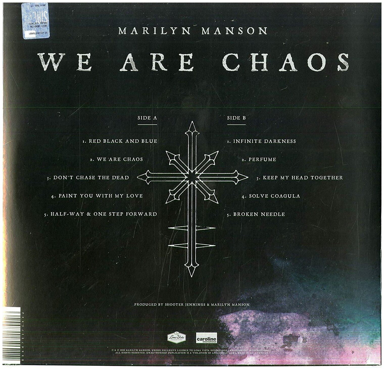 Исполнитель Marilyn MansonАльбом We Are ChaosГод выхода 2020Год релиза 2020Лэйбл Loma VistaФормат LPСостояние NewЖанр RockСтиль Glam / Alternative RockЦвет BlackСтрана EUIncludes a 24x24 Poster.A1 Red Black And Blue A2 We Are Chaos A3 Don't Chase The Dead A4 Paint You With My Love A5 Half-Way & One Step Forward B1 Infinite Darkness B2 Perfume B3 Keep My Head Together B4 Solve Coagula B5 Broken Needle