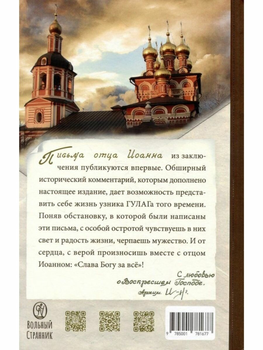 Письма отца Иоанна из заключения публикуются впервые. Обширный исторический комментарий, которым дополнено настоящее издание, дает возможность представить себе жизнь узника ГУЛАГа того времени. Поняв обстановку, в которой были написаны эти письма, с особой остротой чувствуешь в них свет и радость жизни, черпаешь мужество. И от сердца, с верой произносишь вместе с отцом Иоанном: «Слава Богу за всё»!