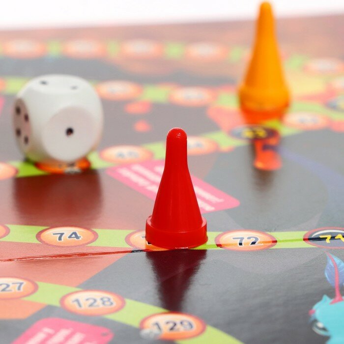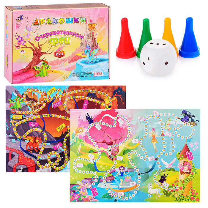 В комплекте: игровое поле, 4 фишки, кубик.