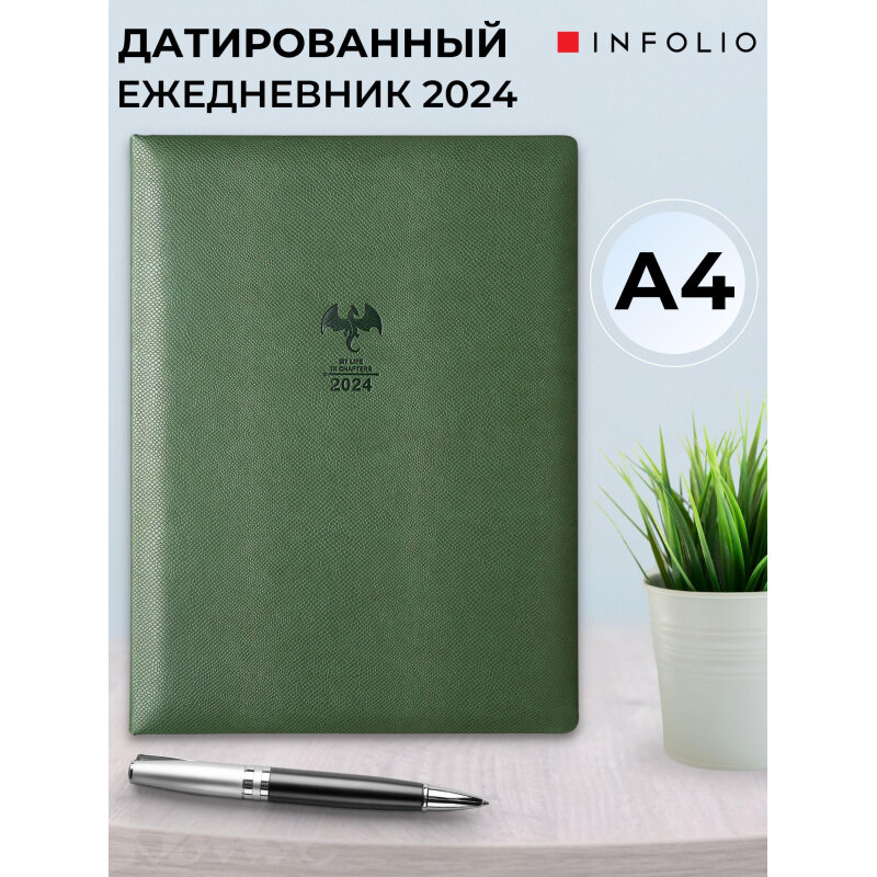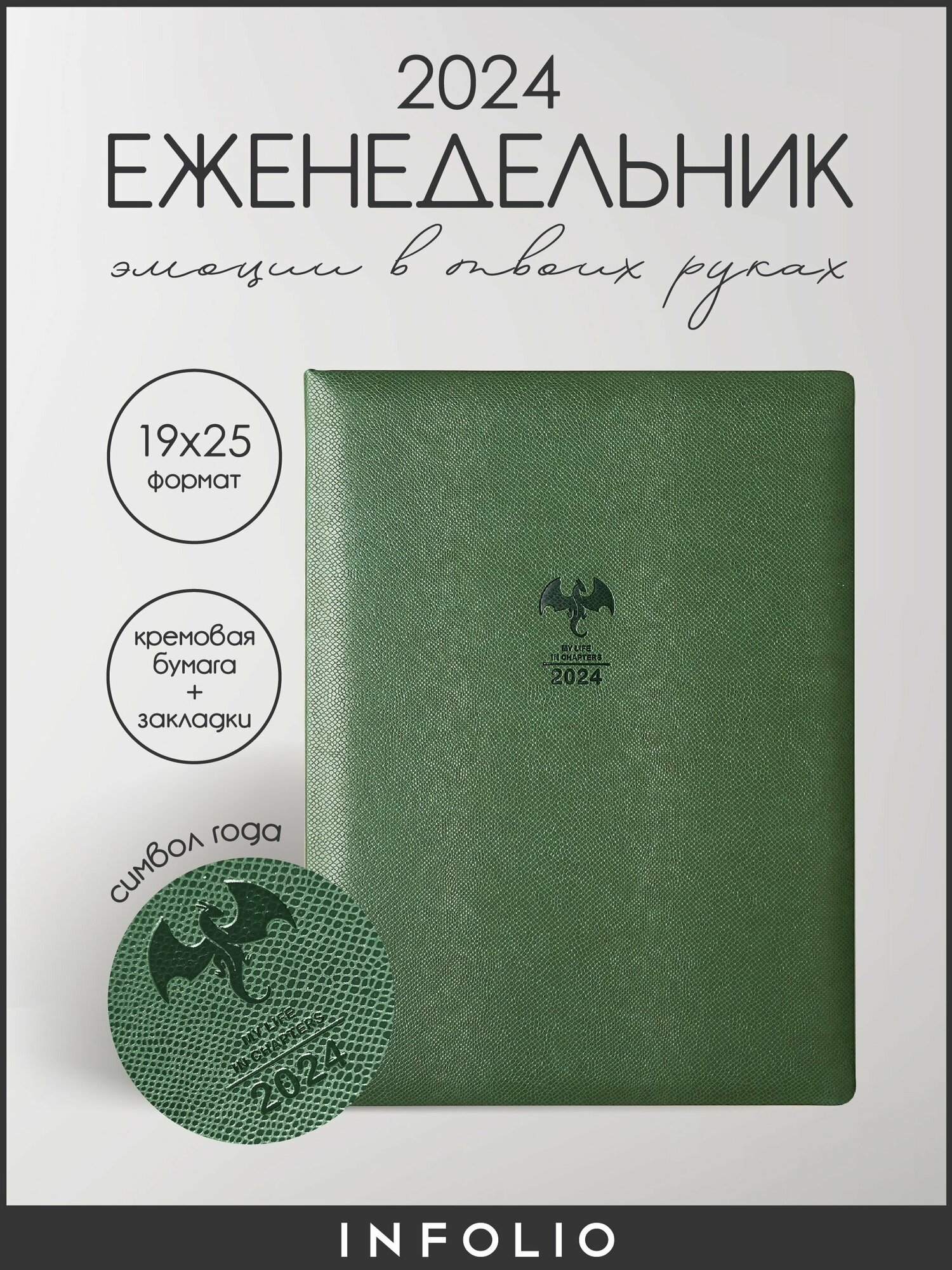 Еженедельник датированный на 2024 год Dragon зеленый 88 листов InFolio