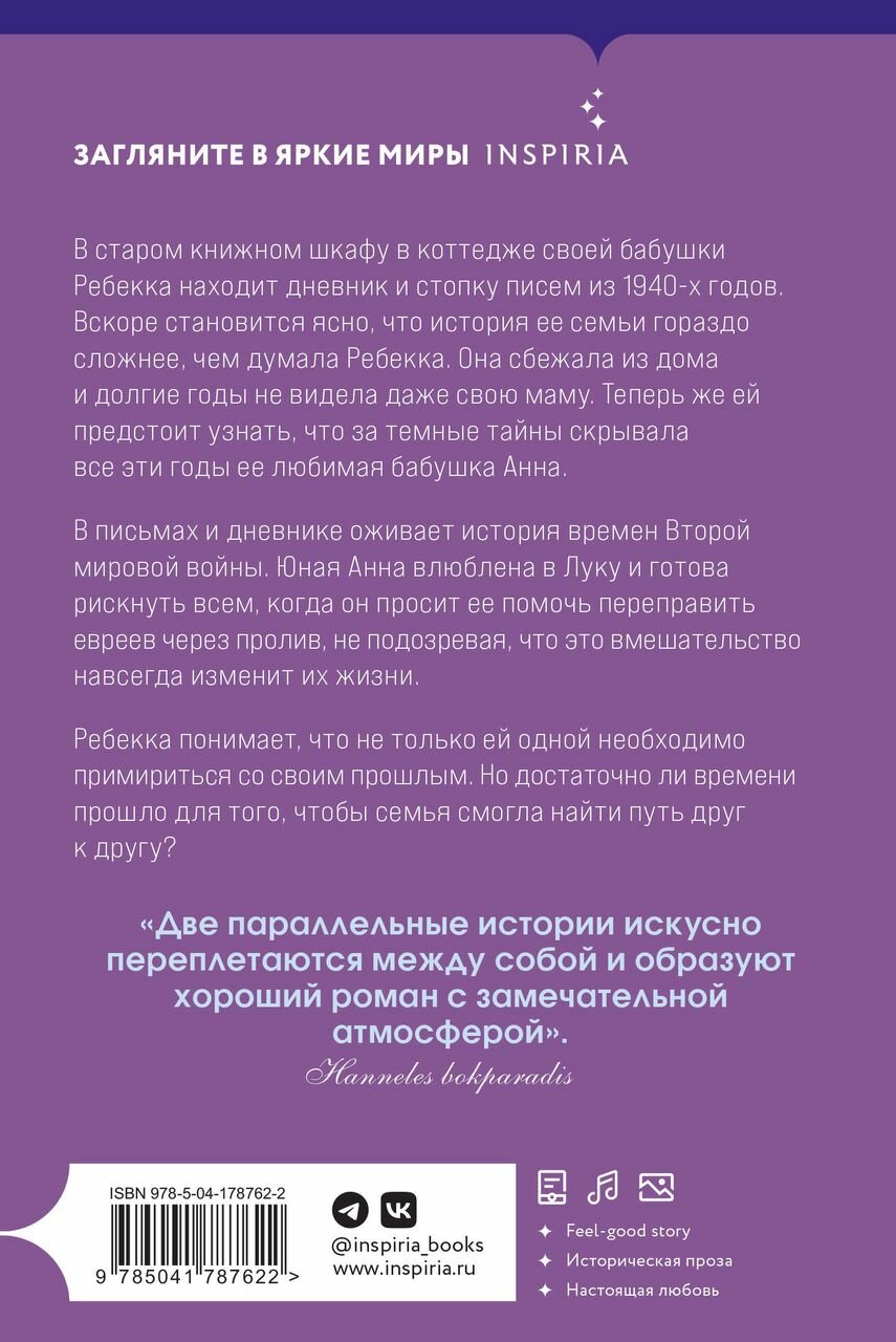 В старом книжном шкафу в полуразрушенном коттедже своей бабушки Ребекка находит дневник и стопку писем из 1940-х годов. Вскоре становится ясно, что история ее семьи гораздо сложнее, чем думала Ребекка. Она сбежала из дома и долгие годы не видела даже свою маму. Теперь же ей предстоит узнать, что за темные тайны скрывала все эти годы ее любимая бабушка Анна?