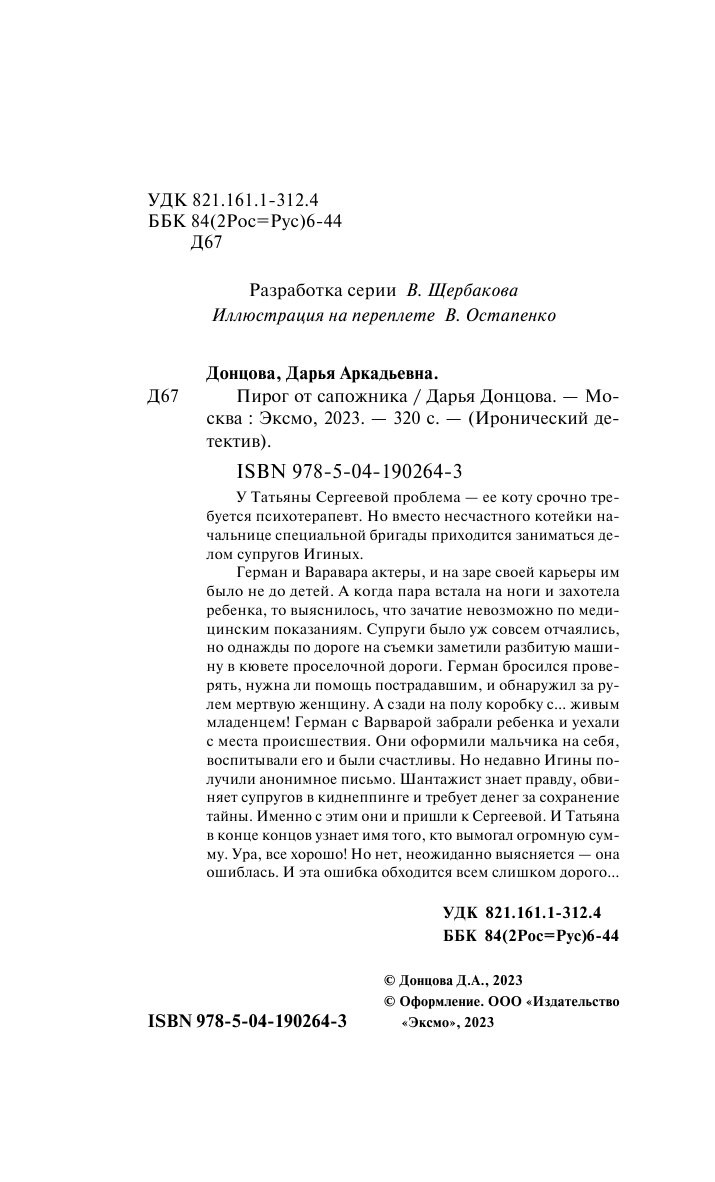 Книга: Пирог от сапожника (Донцова Дарья Аркадьевна); ООО "Издательство "Эксмо", 2023